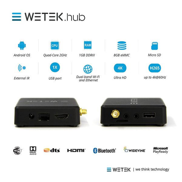 WeTek Hub is a sturdy, ultra portable media player boasting the latest 4K/UHD video codecs and certified high quality audio. An external InfraRed port allows it to be mounted and concealed behind a TV set or hidden away, making it truly discreet.